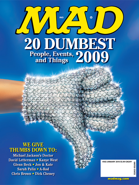 Another dumb year has come and gone ? and it`s time for MAD to announce the 20 dumbest people, events and things of 2009! We don`t want to name names?but if we DID, here are some that would come up: Glenn Beck, Michael Jackson, Jon & Kate, David Letterman, Kanye West, Bernie Madoff, Chris Brown, Sarah Palin! Plus many, many other idiots! All this dopery, plus Spy Vs. Spy, the Fold-In, A MAD Look at the Great Recession and a bonus 2010 Sergio Aragones calendar! If you don`t pick this issue up, it`ll be the dumbest thing you do all year.