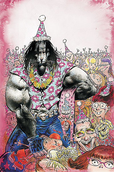 It`s been a long hard road into Hell, but Lobo`s face to face with Satan at last! And make no mistake, he`s going to stab the Devil right in his... adorable... blond-haired... pretty... What the frag?!? This is not what the Main Man was expecting, people! Anthrax icon Scott Ian and warped genius Sam Kieth have clearly lost their minds ? join them, won`t you?