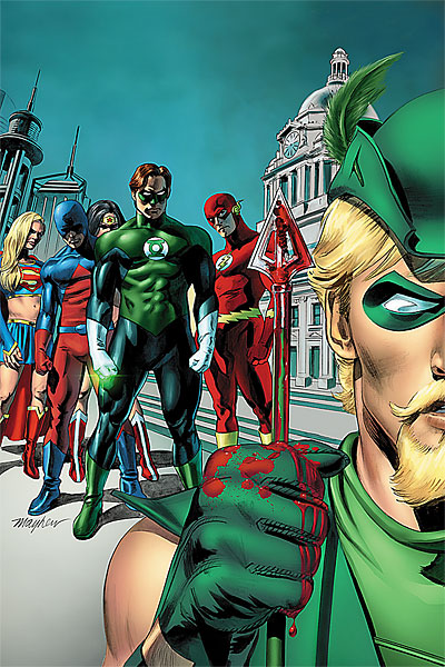Following the stunning conclusion to JUSTICE LEAGUE: CRY FOR JUSTICE comes the next epic chapter for the World`s Greatest Heroes. What controversial decision has created a split in the League? A new meaning to the term "hunt for justice" creates fear in the villain populace. Plus, a shocking secret is revealed that will change Green Arrow`s life forever. Variant Cover by Mike Mayhew shown.