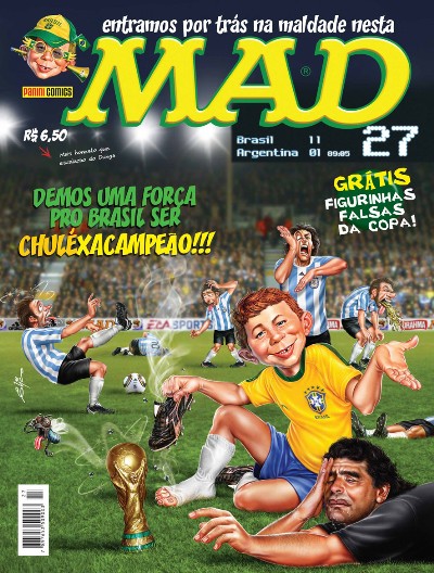 Aproveitando o clima de Copa do Mundo, a revista de humor MAD decide dar uma mãozinha (ou seria pé) para a Seleção Brasileira e botar a Argentina numa pior com mais uma capa feita pelo genial Elias Silveira.