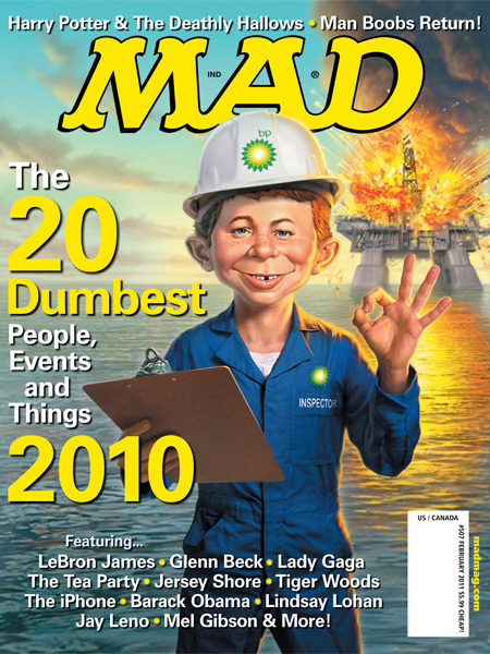 It's that time of year again ? time for the MAD 20, our list of the dumbest people, events and things of 2011! Now you can relive all the stupidity of Jersey Shore, Lindsay Lohan, Tiger Woods, the iPhone, Glenn Beck and many more! This extra-moronic issue also includes our full-length spoof of Harry Potter and the Deathly Hallows, Part 1, The MAD Strip Club, a bonus 2011 Spy Vs. Spy Calendar, and a new edition of The MAD Guide to Man Boobs! End your year the way you started it ? stupidly! MAD | 56pg. | Color