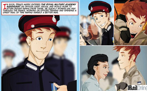 A Editora americana Bluewater está apostando em transformar a vida dos integrantes da Família Real Britânica em quadrinhos. O primeiro livro ?Wild Child? (?Criança Selvagem?) conta a história do príncipe mais jovem Harry, a sua infância, os seus amores, a vida no exército e outros pormenores.