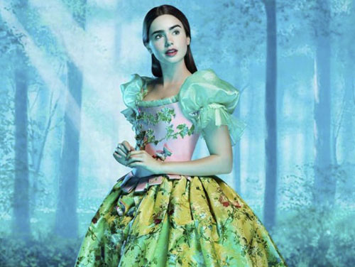 Algumas imagens do filme Branca de Neve do roteirista Jason Keller foram liberadas e mostram que essa versão promete ser mais tradicional, mas não podemos deixar de destacar a opulência cômica dos figurinos. Esse filme traz Lily Collins no papel título e como rainha má a bela Julia Roberts.