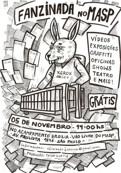 Os fanzineiros que estiverem em São Paulo no dia 5 de novembro não podem deixar de conferir o evento Fanzinada no MASP. Esse evento é organizado por Thina Curtis, Daniel Melim, Renato Doniseti e Rogério Amorim e tem como objetivo comemorar o fanzine.