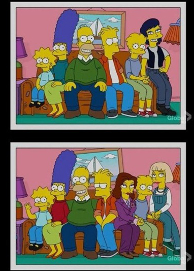 Encontramos um post num blog que é muito legal e que mostra como seria o álbum de família dos Simpsons caso eles envelhecessem. Digamos que o vovô faleceu depois de um tempo, Lisa passou por algumas fases rebeldes incluindo algumas namoradas, Bart teve problemas com os estudos, Lisa casou com Milhouse, Maggie virou estrela do rock e assim por diante...