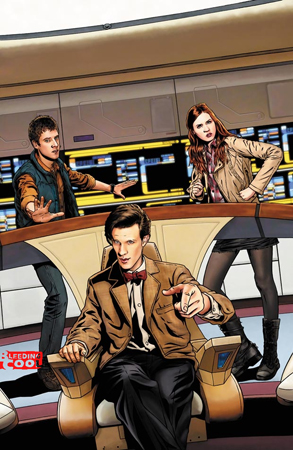 Um encontro bastante interessante está para acontecer, a editora americana IDW irá lançar uma história em que os personagens de Doctor Who encontram os personagens de Star Trek. Por enquanto ainda não há maiores detalhes sobre a história, quem vai desenhar ou quem ó roteirista, somente essa imagem.