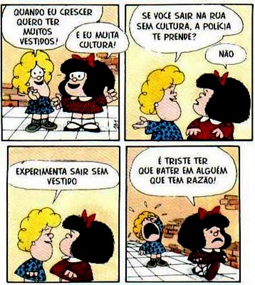 Nesse dia não podemos deixar de dizer o quanto o Mafalda é importante na afirmação feminina na política e também nas questões mundiais. Um dos principais embates de Mafalda era com a submissa Susanita que só pensava em roupas e casamento.