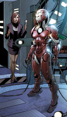 Resgate. A namorada de Tony Stark, nos quadrinhos, recebeu uma armadura do