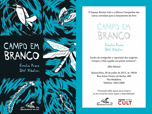 Aos poucos o mercado editorial brasileiro vai se abrindo para HQ`s nacionais, uma prova disso é o lançamento de Campo em Branco pela editora Companhia das Letras. A graphic novel chega neste mês de junho e é resultado do trabalho de Emilio Fraia (roteiro) e DW Ribatski (arte). Essa HQ é mais uma parceria entre a dupla que já trabalhou em obras como ?Cachalote?, ?A Máquina de Goldberg? e ?V.I.S.H.N.U?.