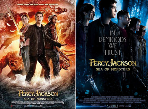 O filme Percy Jackson e o Mar de Monstros será lançado no dia 16 de agosto desse ano e apresentou dois novos cartazes. Nos dois podemos ver os personagens principais, porém, no da direta podemos ver uma composição que sugere aventura e no outro podemos ver um visual mais sombrio. Qual vocês curtiram mais?
