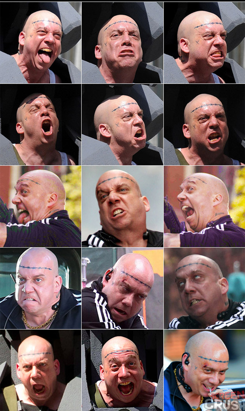 Um dos destaques dos sets de filmagem de ` The Amazing Spider-Man 2 " tem sido o ator Paul Giamatti que será o vilão Rhino nesse longa. Algumas fotos das filmagens estão rolando na internet e mostrando as caras e bocas do ator, parece que o vilão será muito doido.