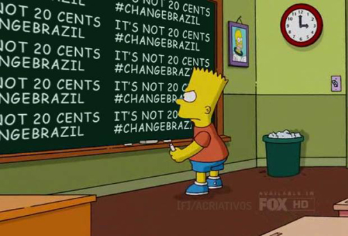 Em nota publicada pela Fox Channel o autor Matt Groening da série dos Simpsons disse que falará sobre as manifestações ocorridas no Brasil. De acordo com o autor será produzido um episódio especial do desenho com foco nessas manifestações. Matt disse que ficou sensibilizado com os pedidos de mudança do povo nas ruas e vai fazer um episódio com muito humor e sarcasmo. A estreia da nova temporada de Os Simpsons está prevista para setembro desse ano nos Estados Unidos.