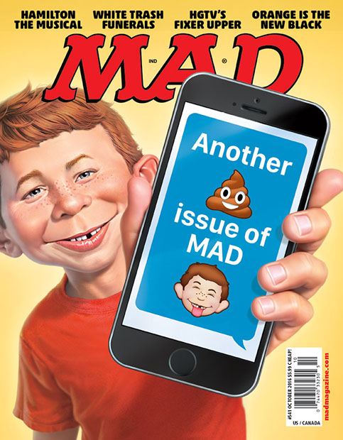 You get the message ? our latest issue is on sale one week from today! It includes spoofs of Fixer Upper and Cracked.com! Plus, Recycled Ad Slogans, Signs You re at a White Trash Funeral, MADs Meme Graveyard, Sergio Aragonés MAD Look at Coffee and much more! Hurry up and get it soon ? haste makes waste!