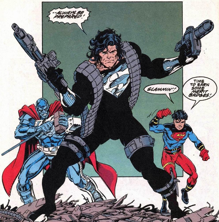 Algumas coisas foram deixadas de lado, como os 4 quatro Supermans que vieram reivindicar seu trono, mas o arco principal foi mantido. Surge então através do projeto Cadmus, um clone chamado Superboy. Outro é Man of Steel, um perito em aço que constrói sua própria armadura. E ainda Erradicador, como um outro alien vindo de Kripton de forma obscura. E para finalizar o SuperCiborgue, que foi criado por Lex Luthor.