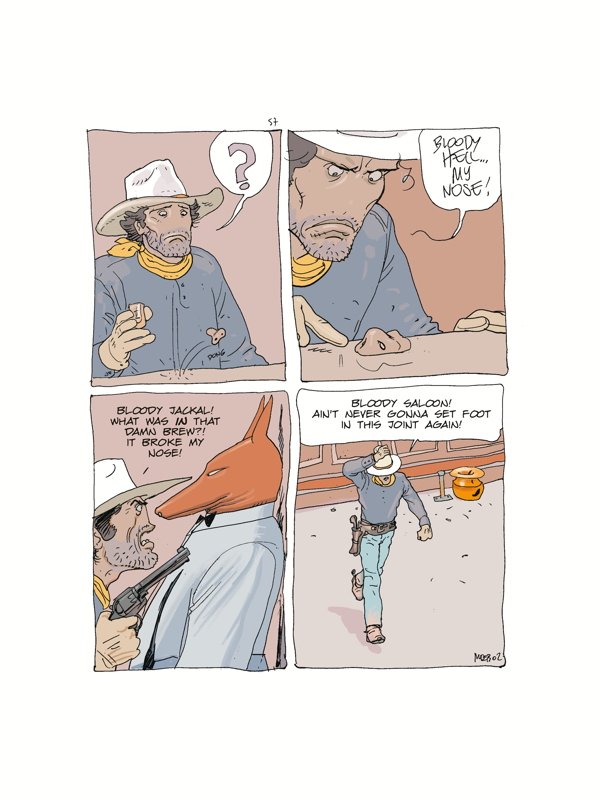 Actively exploring his storytelling methods within his own mind, Moebius draws himself encountering his favorite characters in an expansive desert setting. He interacts with Arzak, Blueberry, Stel, Atan, and others--and he also meets younger versions of himself! A self-reflective six-part study, Inside Moebius Part 2 collects the two middle chapters in this hilariously unique exploration of a creator over-analyzing his thought processes as he creates new comics.