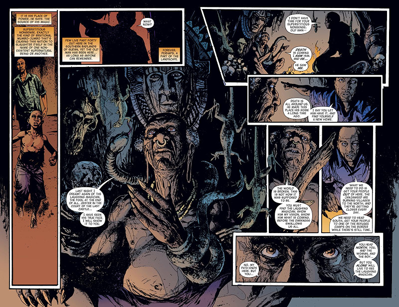 Vertigo's flagship title issue with "The Laughing Magician," The streetwise, chain-smoking con-magician John Constantine finds himself in receipt of a most perplexing birthday gift: a memory wrapped up in a warning. As Constantine tries to figure out what it means, the brutal African war-mage known as Mako hits London - and he's taking no prisoners...