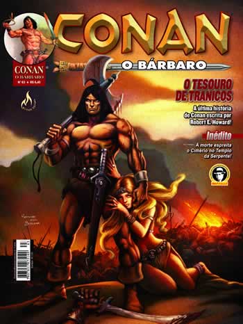 Revista mensal, formato magazine, 68 páginas em preto e branco. Neste número, reapresentamos a primeira parte de uma aventura que levou três anos para ficar pronta: a adaptação em quadrinhos de O Tesouro de Tranicos, um dos mais famosos épicos do Gigante de Bronze. Esta é a última história de Conan escrita por Robert E. Howard ? que lhe conferiu o título O Forasteiro Negro ?, mas só foi publicada 20 anos após sua morte, embora ligeiramente reformulada (inclusive no título) pelo escritor L. Sprague de Camp.