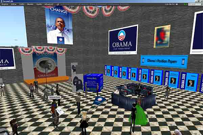 O interesse dos residentes do mundo virtual pelas eleições deixa lento o acesso a algumas das ilhas virtuais que abrigam os maiores comitês de apoio aos candidatos.
