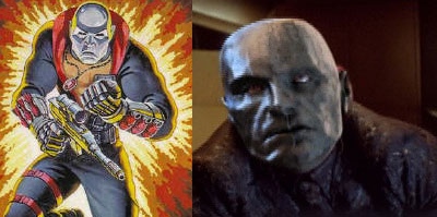 O site ToplessRobot divulgou a primeira imagem do terrorista Destro (Christopher Eccleston, de ?Extermínio?) em ?G.I. Joe: A Origem de Cobra" ou ?Comandos em Ação?, como é conhecido no Brasil. Confira abaixo a versão cinematográfica e a versão dos bonecos articulados.
