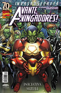Os Poderosos Vingadores: os skrulls bolam um plano maquiavélico pra se livrar do Sentinela! E veja quando Hank Pym foi trocado por um skrull! Vingadores ? A Iniciativa: já apegado à sua vida na Terra, o Cruzado precisa decidir se luta ao lado dos skrulls ou dos humanos! E a empolgante estreia de O Invencível Homem de Ferro! (Mighty Avengers 14-15; Invencible Iron Man 1; Avengers: The Initiative 15)Revista mensal, formato americano, 100 páginas